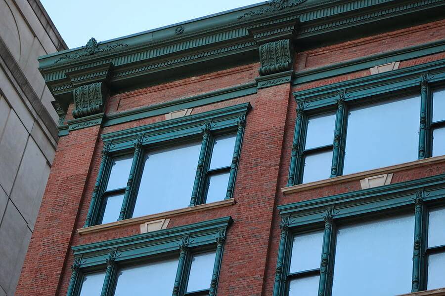 angled-view-of-brick-building-with-green-trim-chicago-colleen-cornelius
